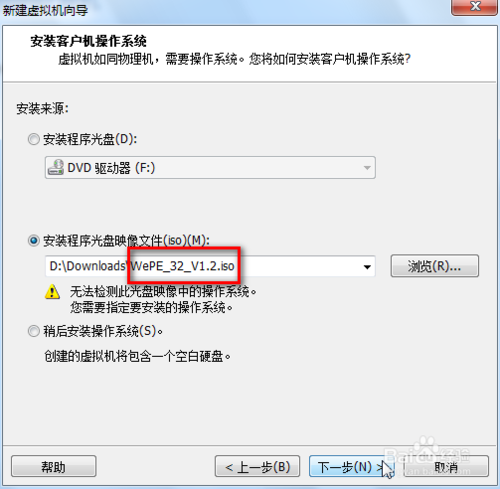 3.打开VMware,新建虚拟机,iso选择刚保存的WePE_32_V1.2.iso,点下一步。