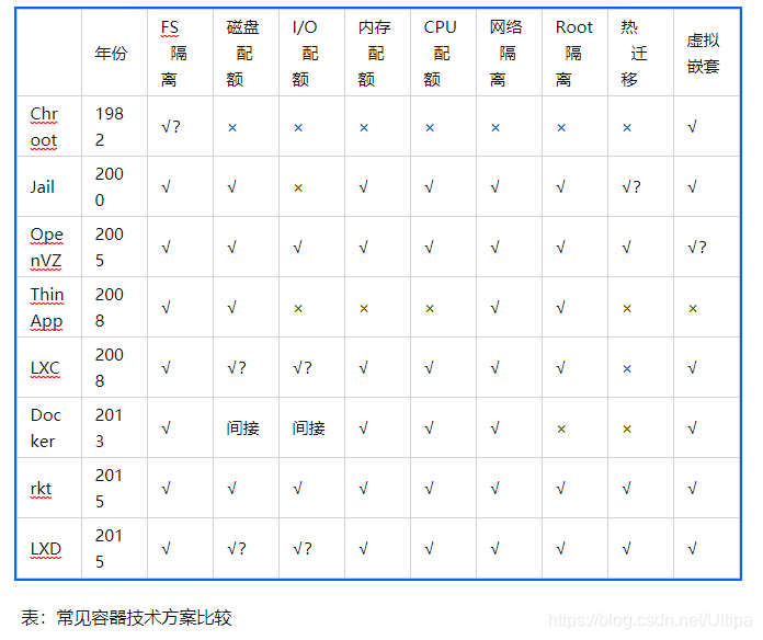 下表列出了常见的操作系统级容器虚拟化技术及功能比较: