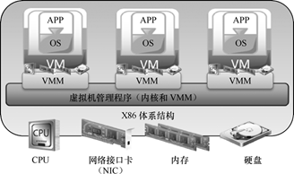 ·在虚拟机与底层硬件间有一层称之为虚拟机管理程序,它通常有内核与VMM(Virtual Machine Manager, 虚拟机管理器,又称作Hypervisor)两大组件。