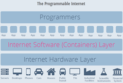 作为容器行业的(曾经的)头羊,Docker公司对于容器计算寄予了厚望,他们认为未来的互联网架构不再是原有的基于TCP/IP协议的四层(物理硬件层、IP层、TCP/UDP层、应用层),而是由如下图所示的四层逻辑实体取代: