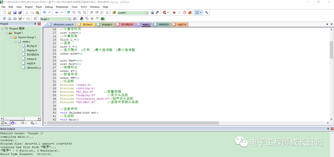 本设计利用KEIL5软件实现程序设计,具体如图。