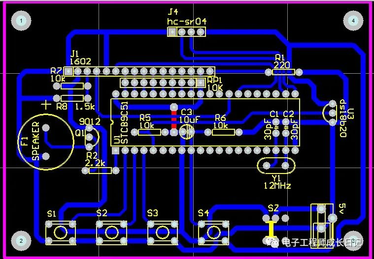 课题《基于单片机的超声波测距》由51单片机最小系统、超声波测距模块、驱动显示电路、5V直流稳压电路、温度传感器等组成。利用超声波测距模块HC-SR04测量距离,并对数据进行分析处理,传给51单片机,再通过LCD1602显示出来,同时电源部分采用5V稳压直流电源。