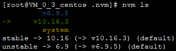 nvm ls返回结果如下所示,则表示安装成功,当前使用版本为 Node.js 10.16.3。