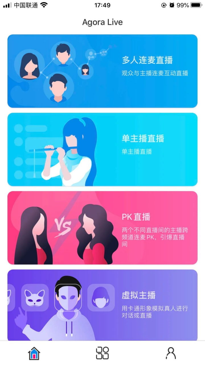 新版 Agora Live 目前已经支持四种时下最热门的实时互动场景,包括: