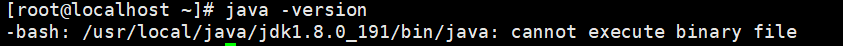-bash: /usr/local/java/jdk1.8.0_191/bin/java: cannot execute binary file