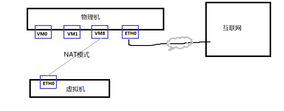 虚拟机在物理机的一个子网中,虚拟机的地址是内网地址,虚拟机所有上网都是借助物理机NAT功能把内网IP转换成外网IP,因此对外面网络上花花绿绿的机器来说,看到的永远只是外网IP。