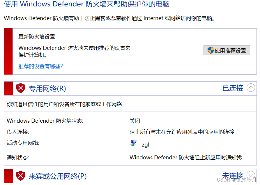 - 虚拟机和电脑主机是可以互相ping通的,如果电脑主机可以ping通虚拟机,但是虚拟机不可以ping通电脑主机,那么多数情况是电脑主机的防火墙打开了,进行关闭即可。