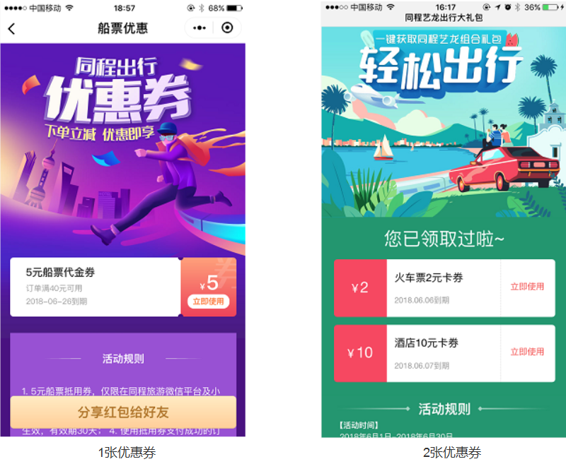 新手注册:在很多应用上,用户新注册会得到一张券,用于促进新用户的下单转化。