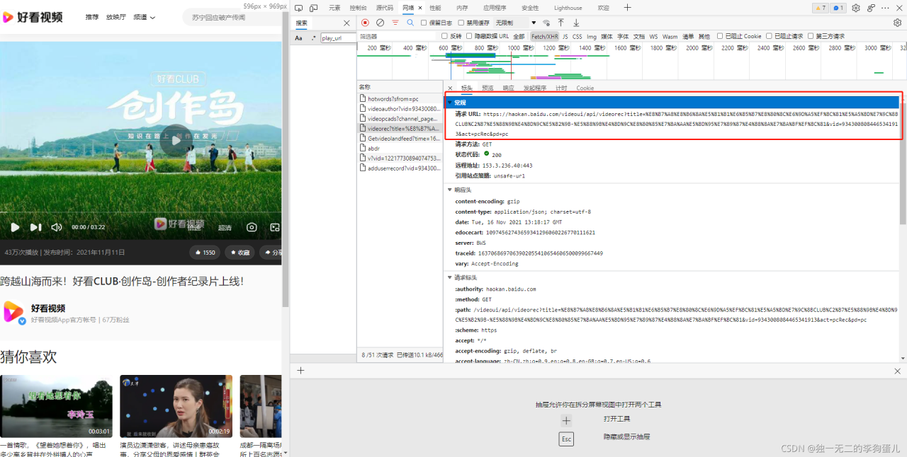 找到了真正的视频链接,通过标头的请求URL可以获取