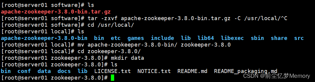 [root@server01 software]# cd /usr/local/apache-zookeeper-3.8.0/