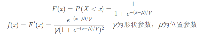 连续随机变量X服从逻辑斯蒂分布时,具有以下分布函数和概率密度函数(一般在讨论逻辑回归模型的时候采用最简单的形式,即参数都等于1):