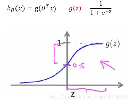 在LR模型中我们知道:当假设函数大于0.5,此时我们预测成正类;反之预测为负类。由图来看,我们可以得到更加清晰的认识。下图为Sigmoid函数,也是LR的外层函数。