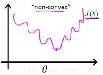 因为LR的假设函数的外层函数是Sigmoid函数,Sigmoid函数是一个复杂的非线性函数,这就使得我们将逻辑回归的假设函数代入均方误差。这样的函数拥有多个局部极小值,这就会使得我们在使用梯度下降法求解函数最小值时,所得到的结果并非总是全局最小,而有更大的可能得到的是局部最小值。