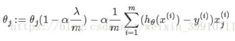 原因是在迭代算法中,如果在原始代价函数之后添加L2正则化,则迭代公式会变成下面的样子。 其中λ就是正则化参数。从下式可以看到,与未添加L2正则化的迭代公式相比,每一次迭代,θj都要先乘以一个小于1的因子,从而使得θj不断减小,因此总得来看,θ是不断减小的。