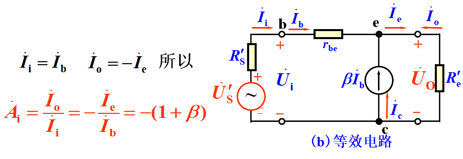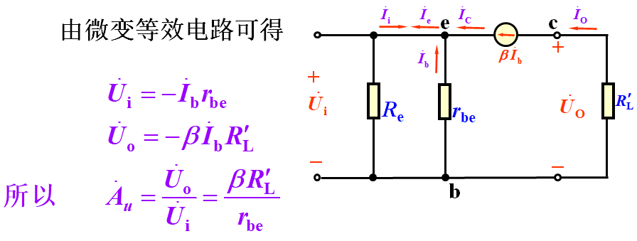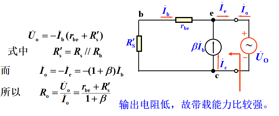 结论:电压放大倍数恒小于1,而接近于1,且输出电压与输入电压同相,又称射极跟随器。