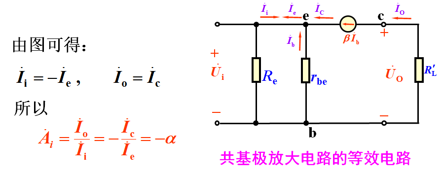 由于 α 小于 1 而近似等于 1 ,所以共基极放电电路没有电流放大作用。