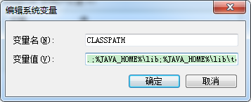 3. 配置CLASSPATH。新建,变量名CLASSPATH,变量值,.;%JAVA_HOME%\lib;%JAVA_HOME%\lib\tools.jar(第一个分号前前面有一个点)。