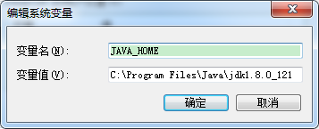 2. 配置JAVA_HOME。新建,变量名JAVA_HOME,变量值,jdk路径,我的路径是C:\Program Files\Java\jdk1.8.0_121,保存。