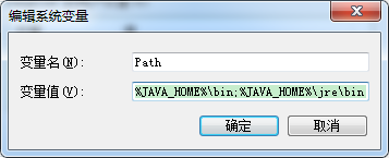 4. 配置Path。打开Path变量,在变量值最前加入%JAVA_HOME%\bin;%JAVA_HOME%\jre\bin;