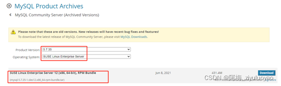 >>5.7.35 rpm升级包:mysql-5.7.35-1.sles12.x86_64.rpm-bundle.rar