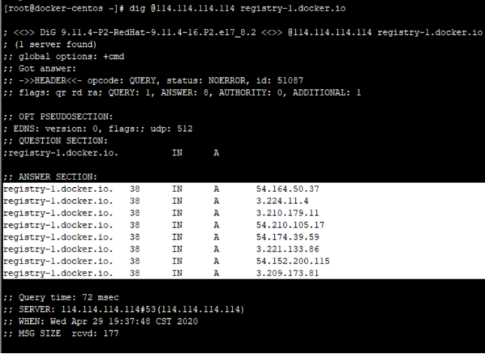 通过dig @114.114.114.114 registry-1.docker.io找到可用IP