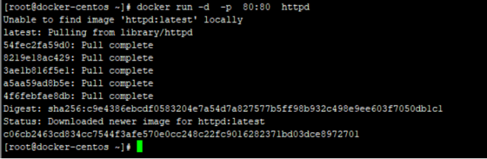 2、启动 httpd 容器,并将容器的 80 端口映射到 host 的 80 端口。