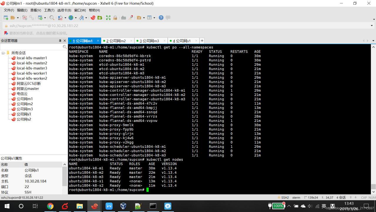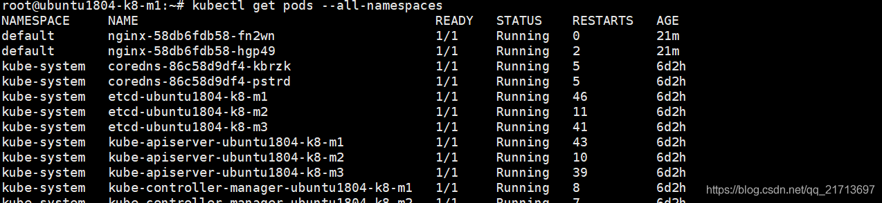 上面这一步需要耐心等待,因为要下载镜像,有点慢,需要通过运行kubectl get nodes确保节点是ready状态。通过下面的命令确保所有pod都是running。