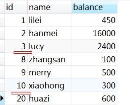 | id | name | balance | 创建事务ID | 修改事务ID |