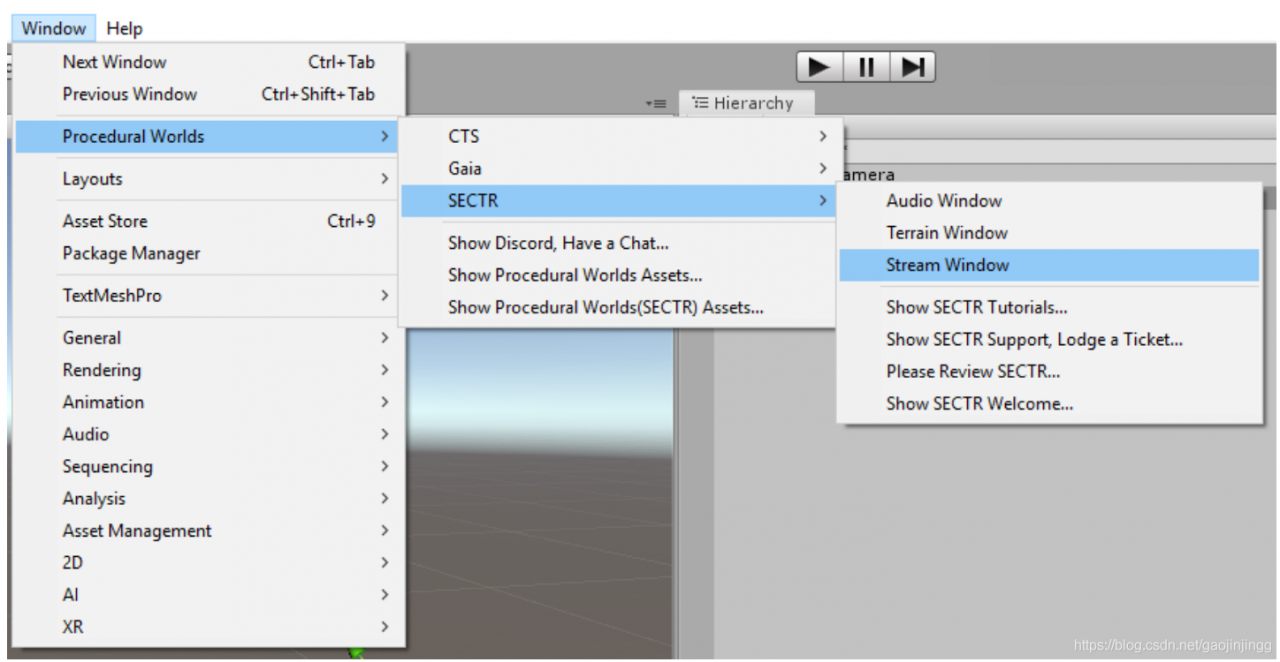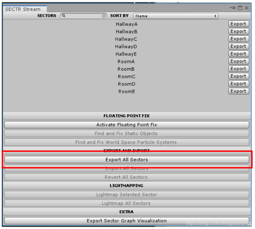 块通过SECTR流窗口导出(和导入)。打开它,通过Window-> Procedural Worlds -> SECTR->Stream Window.