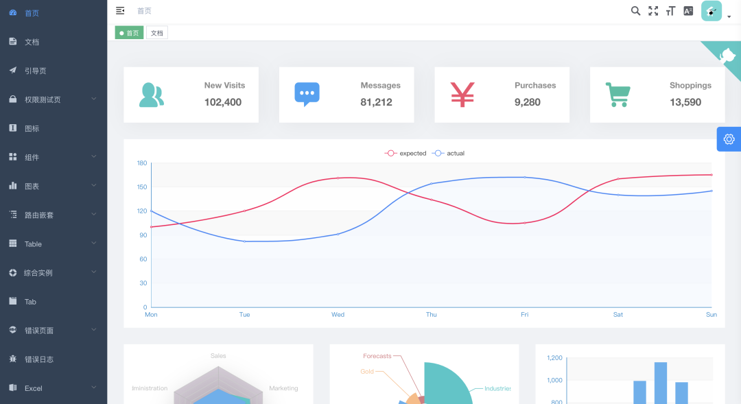 vue-element-admin 是一个后台前端解决方案,它基于 vue 和 element-ui实现。它使用了最新的前端技术栈,内置了 i18n 国际化解决方案,动态路由,权限验证,提炼了典型的业务模型,提供了丰富的功能组件。