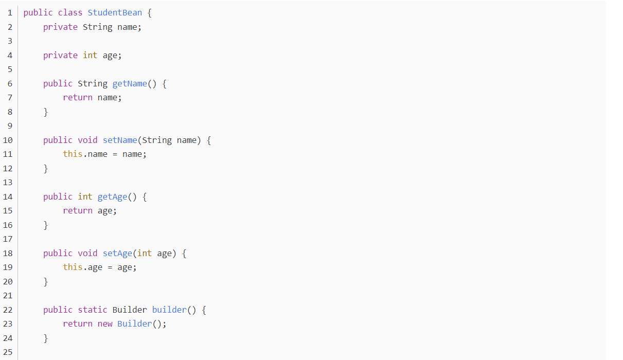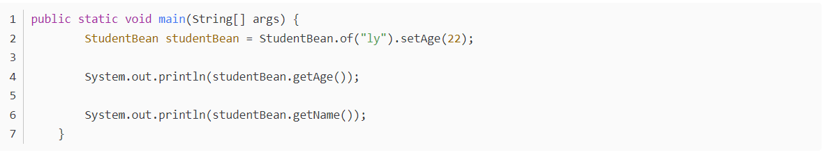 StudentBean studentBean = new StudentBean().setAge(22).setName("ly");