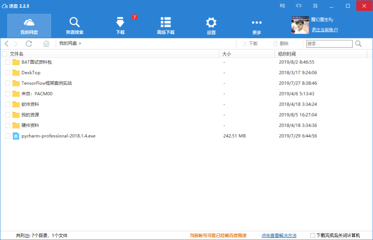 其实呢 , 这个才是真的牛逼 , 完全模仿的百度网盘 , 速度也很快 , 下载速度完全没有限制 , 可以呦10兆左右