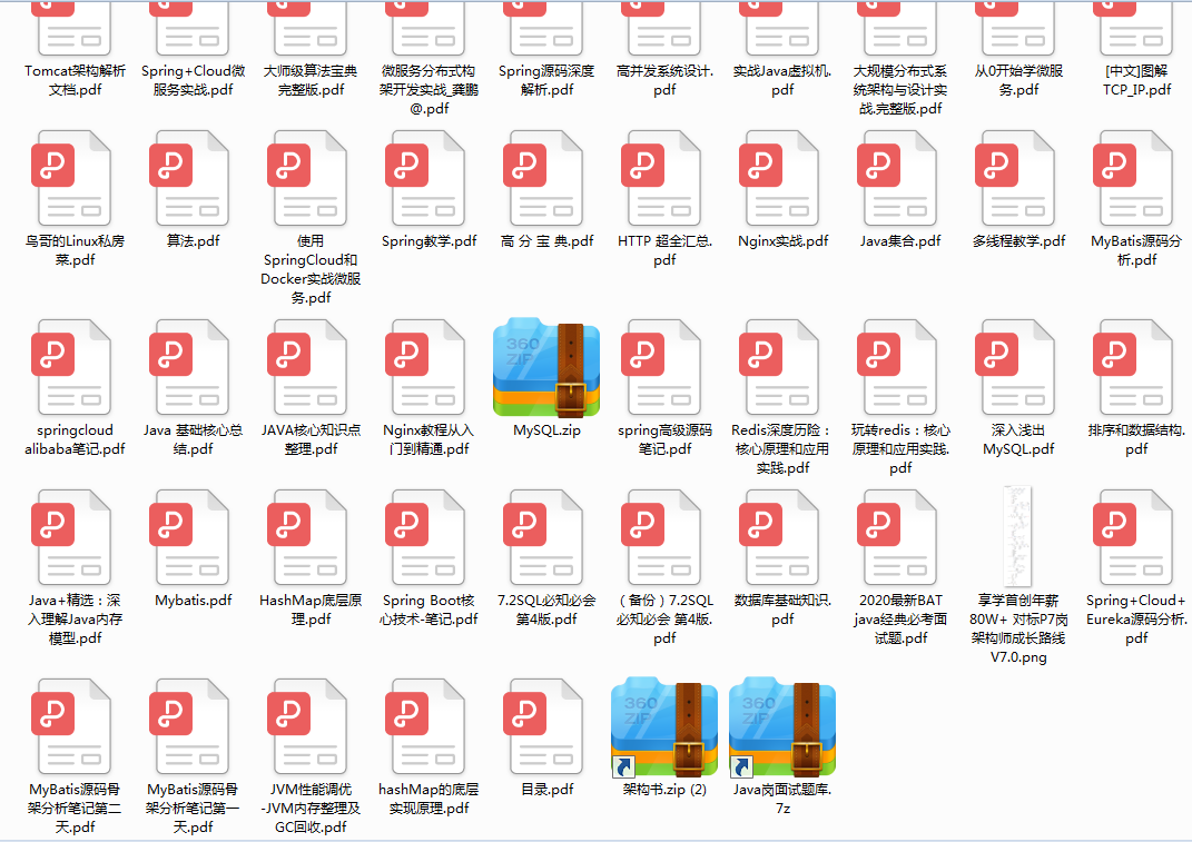 作为过来人,小编是整理了很多进阶架构视频资料、面试文档以及PDF的学习资料,针对上面一套系统大纲小编也有对应的相关进阶架构视频资料,如果**‘你’确定好自己未来的道路或者想学习提升自己技术栈、技术知识的小伙伴们可以点击这里来获取免费学习资料提升自己(全套面试文档、PDF、进阶架构视频)**