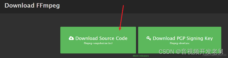 1.官网下载 ffmpeg source code,或者download页面下拉查找对应版本tar压缩包下载