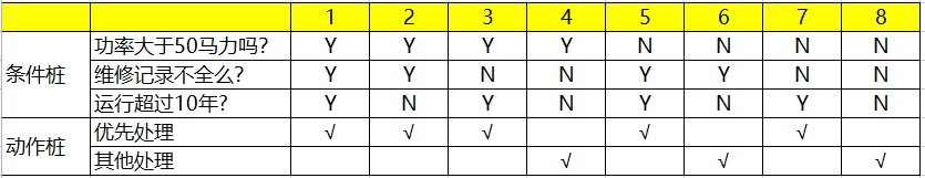 动作项: 列出在条件项的各种取值情况下应该采取的动作