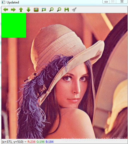 image[0:100,0:100] = (0,255,0);#更改读取的像素块