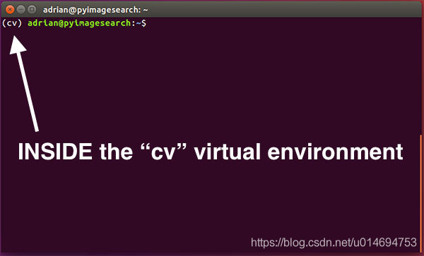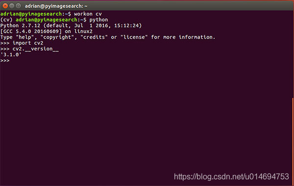 $ mkvirtualenv cv -p python3接下来需要验证一下刚创建的虚拟环境