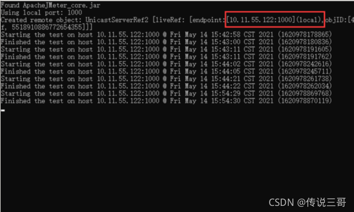 (2)启动执行机上的Jmeter-server.bat,如下图所示,端口号已经修改为:1000.这里是修改成1000。