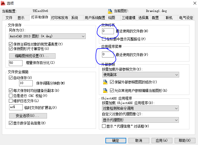 进入CAD,用“op”命令打开选项窗,切换到“打开和保存”分页,然后把“最近使用文件数”都改为“0”。