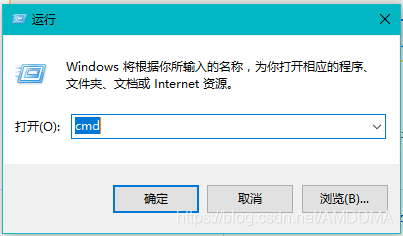 然后在Windows运行窗口输入cmd进入Windows的命令行界面: