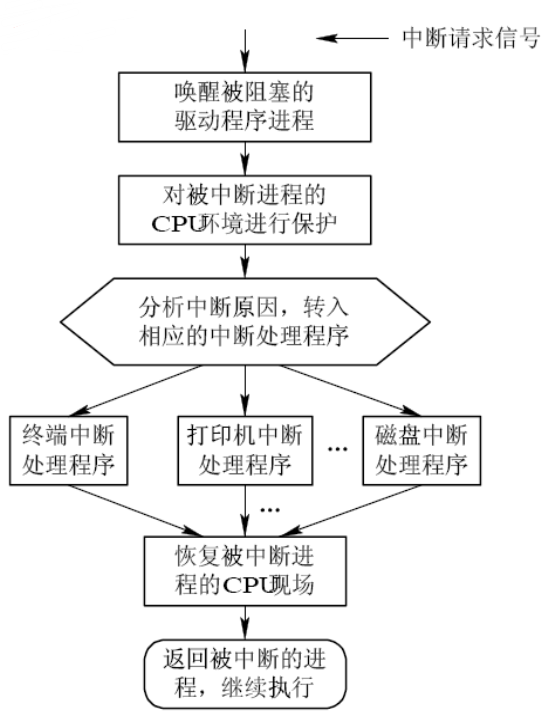 引入中断机制。由于I/O设备速度很慢,因此在CPU发出读/写命令后,可将等待I/O的进程阻塞,先切换到别的进程执行。当I/O完成后,控制器会向CPU发出一个中断信号,CPU检测到中断信号后,会保存当前进程的运行环境信息,转去执行中断处理程序处理该中断。处理中断的过程中,CPU从I/O控制器读一个字的数据传送到CPU寄存器,再写入主存。接着,CPU恢复等待I/O的进程(或其他进程)的运行环境,然后继续执行。