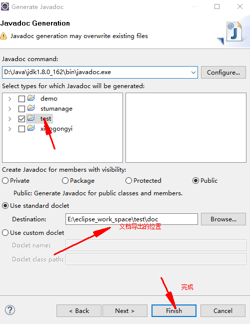在eclipse使用时,可以配合文档注释,导出对类的说明文档,从而供其他人阅读学习与使用。通过使用文档注释,将类或者方法进行注释,用@简单标注基本信息。如@author 作者、@version代码版本、@param方法参数、@return方法返回值等。