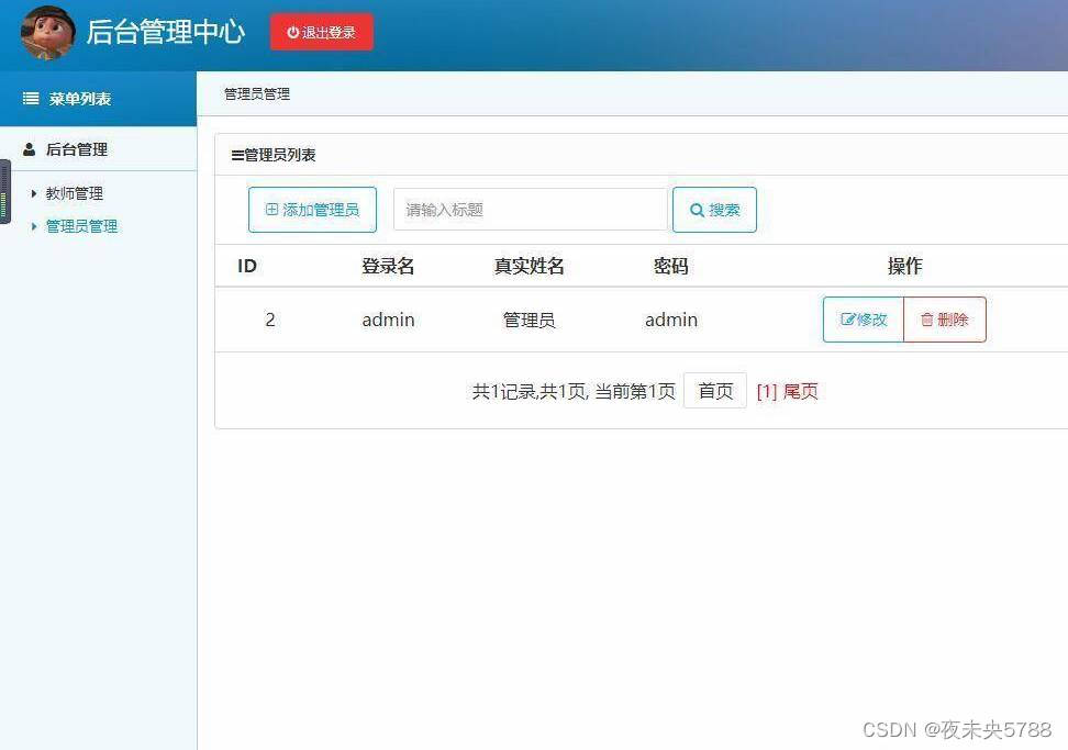 登录,教师管理,管理员管理等功能。