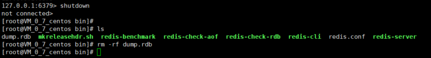 5、执行shutdown命令关掉服务,并把dump文件删除