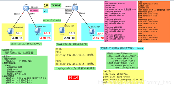 - port trunk pvid vlan 20 //将trunk接口默认的PVID 1 ,修改为 PVID 20 ;