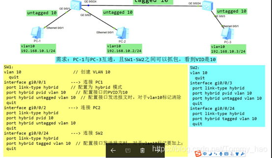 当Hybrid 配置了 tagged vlan @@ 的时候,那么携带标签 @@ 的数据,直接发送出去,不删标签;