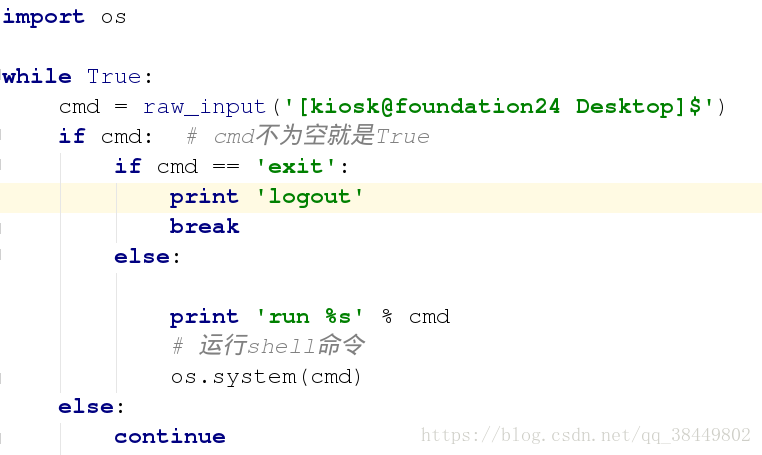 cmd = raw_input('[kiosk@test ~]$')