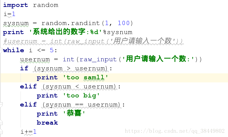 4. 如果用户猜测的数字小于系统给出的数字,打印"too small";