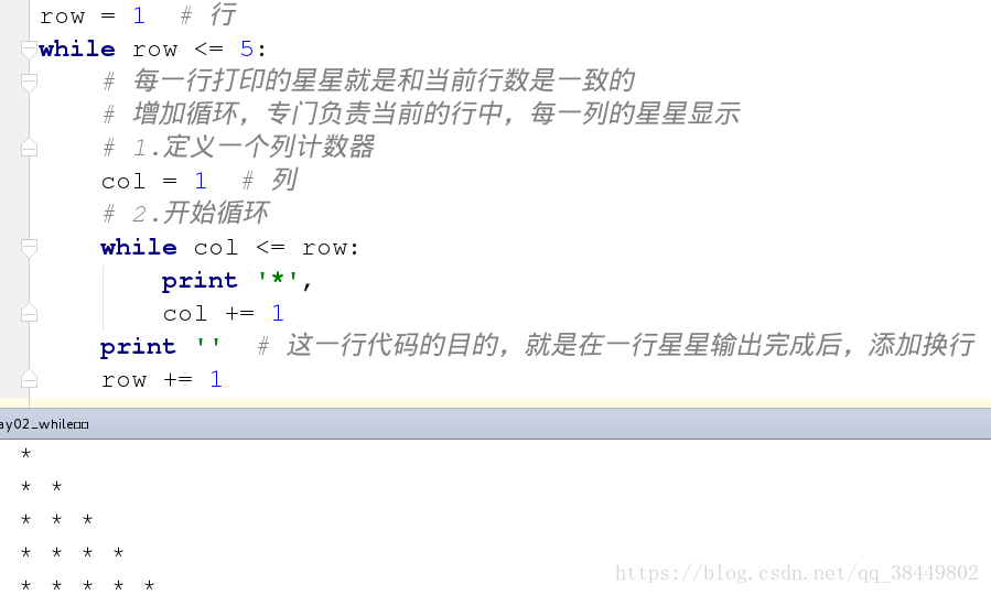 # 每一行要打印的星星就是和当前行数是一致的