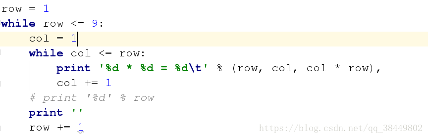 while col <= row: